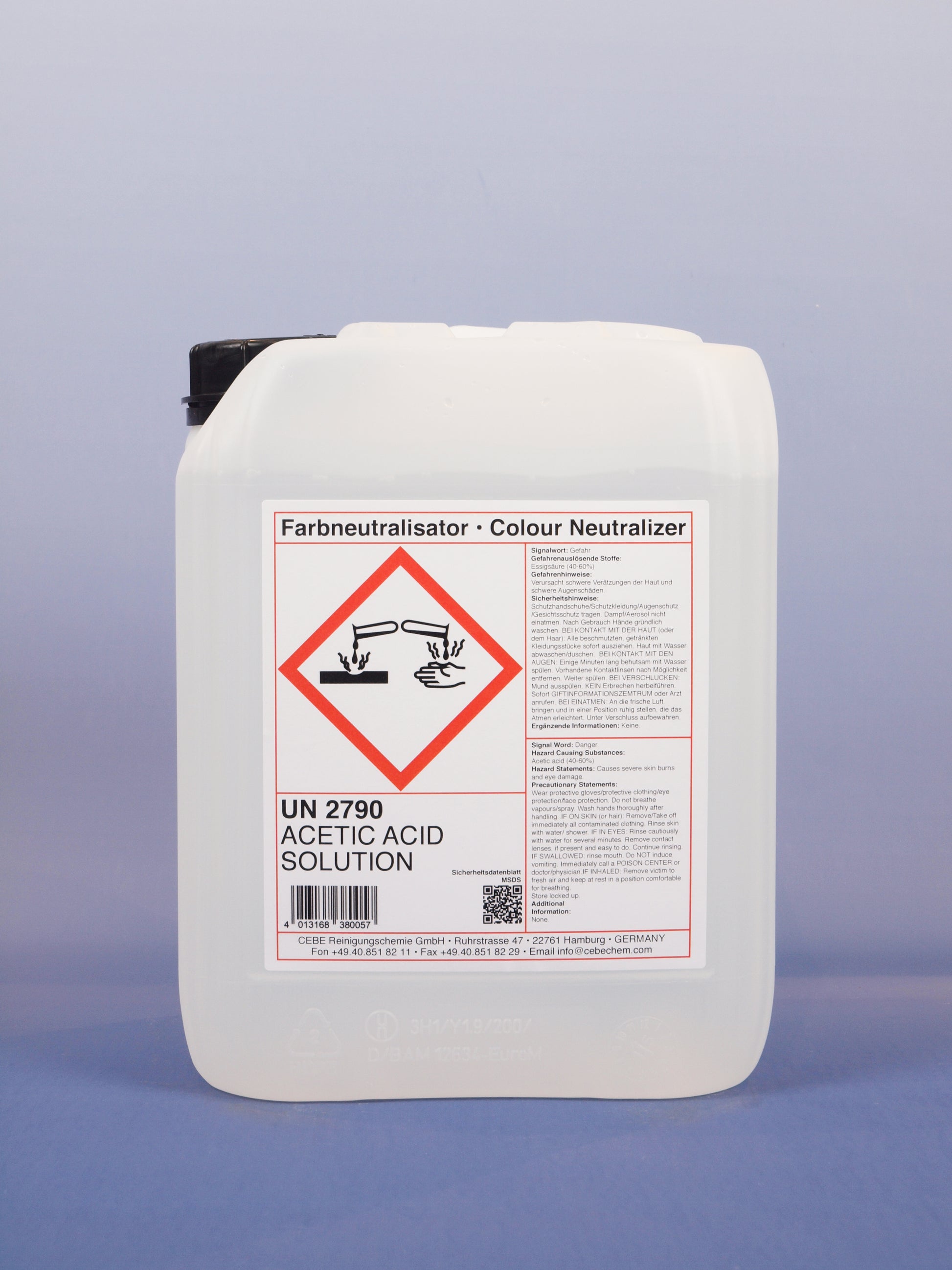 Produktinformation: Farbneutralisator ist ein Produkt auf Basis Essigsäure, welches bei der Teppichwäsche für die pH-Einstellung verwendet wird. Ein niedriger pH-Wert ist wichtig wenn besonders hochwertige Teppiche, welche mit natürlichen Farben eingefärbt wurden, gewaschen werden, um das Auslaufen der Farben zu verhindern.