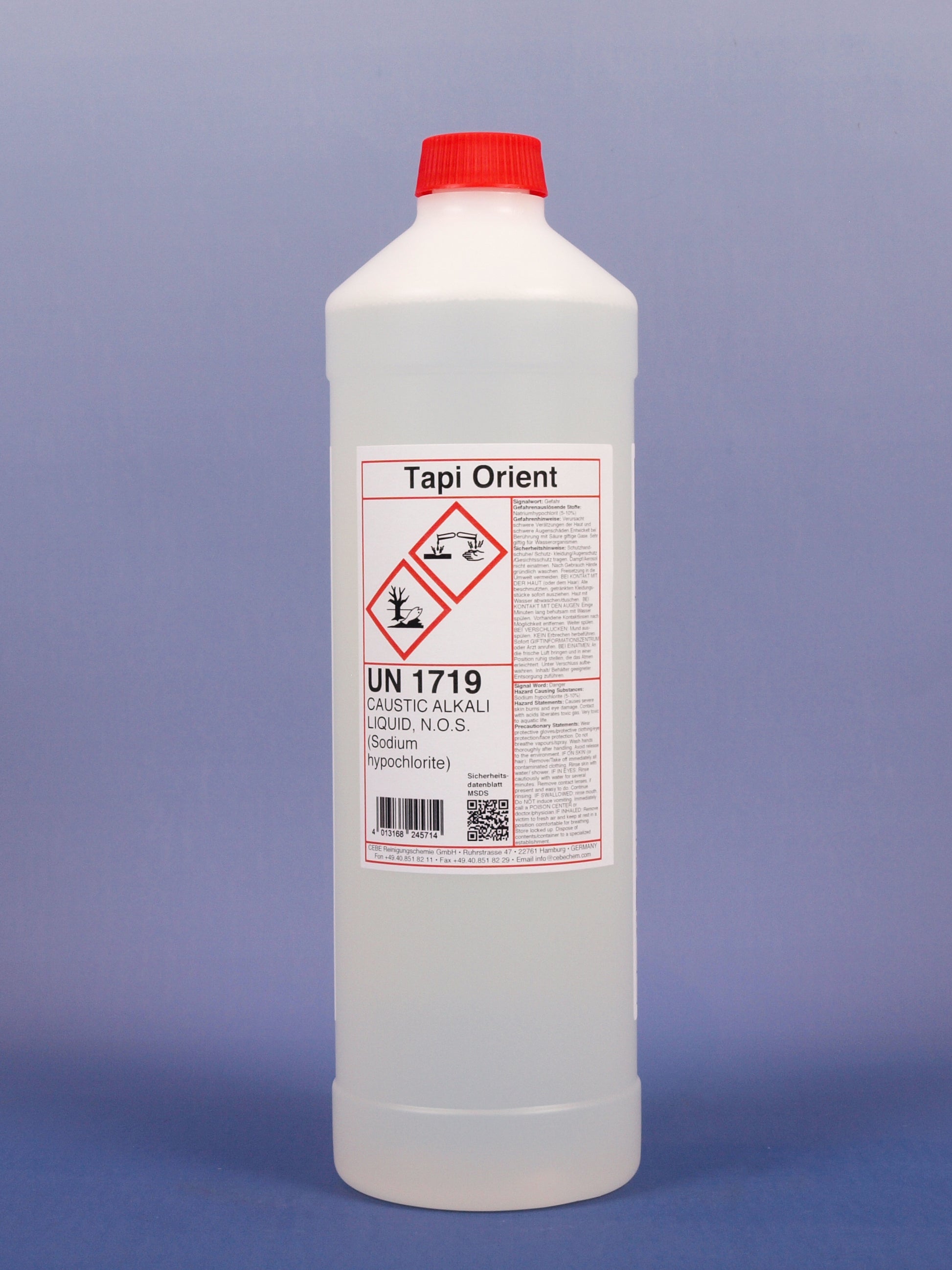 Inhaltsstoffe: Natriumhypochlorit, anionische Tenside, Komplexbildner, Lösevermittler und Wasser.